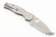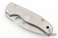 This Shaman Pln by Spyderco features a stonewashed spear point blade with notched thumb and finger rests, thumbhole. The handle has custom Ripp's Garage Tech titanium backspacer and scales, comes with original black G-10 scales, inlaid stainless steel liners and a stonewashed stainless steel backspacer, 4-way reversible Lynch NW clip, lanyard hole at the butt. Comes with original box and papers. Excellent Condition.