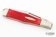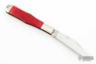 This Coke bottle folder by Case knives was made in 1990. It has a mirror polished blade with nail nick. The handle has nickel silver double bolsters, red jigged bone covers, brass liners, steel spring. Has half stop, flush in all positions. Has some light scratches, otherwise excellent condition.