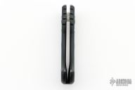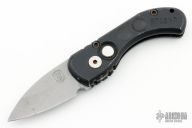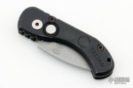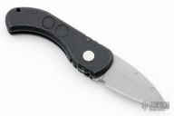 This California Special button lock auto has a bead blasted stainless steel drop/ spear point blade. Handle is black anodized aluminum with non-slip inserts. Has some scuff/scratches, otherwise good condition.
