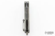 This Medusa by Heretic Knives features a Blued Vegas Forge Damascus multi-ground tanto blade with false top edge, notched thumbrest. The handle has a two-tone titanium frame with cross cut mammoth ivory inlays, titanium backspacer and a tip up clip with ceramic ball. Comes with original box, COA, zippered case and drawstring bag.  S/N 012 and dated 08/23.  New condition.