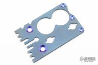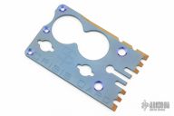 This titanium Crisis Card by Mike Snody has a chisel ground blade and milled frame. Comes with COA dated 2009 and brown leather sheath. Excellent condition.