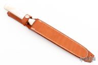 The Model 10-7 by Randall is a Crider Special with spearpoint stainless blade with notched thumb and finger rests, sharpened top edge, .111" blade stock and .850" blade depth, full tang construction. Double finger groove and mother of pearl scales. Brown leather sheath is stamped "Jack Crider Special". Comes with a zippered case. Excellent condition. Hard to find.