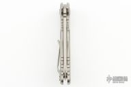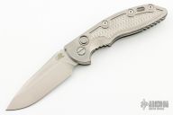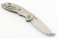 This XM-18 Flipper by Rick Hinderer Knives features a 3.5" stonewashed finish blade, notched thumbrest and flipper.  The handle has a stonewashed titanium frame with a matching tip up pocket clip.  Comes with a Hinderer box. Excellent condition.