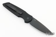 This TR-3 is a collaboration between Pro-Tech Knives Staccato. This knife has a black DLC coated blade. The handle has a black aluminum frame with a Staccato milled G-10 inlay.  Black tip up stainless pocket clip.  There are only 150 of these world wide.  Includes the original box and papers.  Excellent Condition.