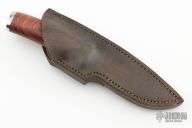This Personal by Bob Lay features a satin blade with polished flats, fileworked thumbrest, polished stainless steel guard, muskox horn spacers, Kingwood grip with a polished stainless steel butt. Hidden tang construction with .172" blade thickness and .934" blade depth. Includes a hand tooled brown leather sheath, zippered case and COA. Nice fit and finish, New condition.