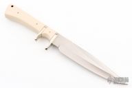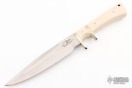 This Sub-Hilt Fighter by Colin Cox features a satin finished blade with sharpened top edge, .246" blade stock, 1.351" blade depth, full tapered tang construction. The handle features a nickel silver guard and sub-hilt, ivory paper micarta scales with mosaic pins. Excellent condition. Fits standard Model ‘C’ Style sheath (Not Included) or something similar.