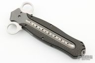 This linerlock flipper by Todd Begg is a Liong Mah design, it features a hand rub satin finished blade with fullers and false top edge. The handle has a bead blasted titanium frame with carbon fiber inlays, titanium liner. Nice detent, lockup and blade seating. Excllent condition. Comes with a velcro case.