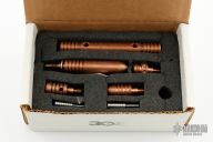 The modular kubaton is a different breed of weapon. Our Modular Kubaton Pens are a unique design of innovation, CNC and CAD/CAM technology. By utilizing modern equipment and computer software we have taken the kubaton to a whole new level. Adding texture to the body assures the user of a no-slip grip. A choice of easy to change attachments, allow the user to configure it as a utilitarian pen or a kubaton. Not only is the modular kubaton an effective self-defense tool, but it is just plain fun to handle. With a selection of different end attachments, your pen can be configured to meet the mission requirements. Includes original box.