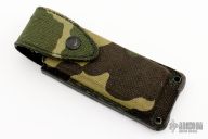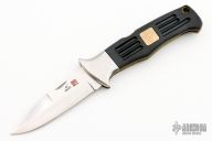 This AL MAR SERE Model 3003 Tactical Folding Knife features a satin finished spear point blade with false top edge. The handle has stainless steel bolsters, textured black Neoprene with the RARE and limited GOLD Al Mar Chop inlaid on both sides, brass liners, stainless steel spring and backspacer, lanyard hole. Comes with a camo covered black leather sheath. Excellent condition.