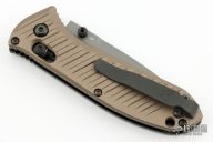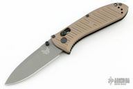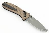 This SHOT Show exclusive manual Mini Presidio II model sports a burnt bronze aluminum handle and a gray finished blade made from CPM-M4 steel. Benchmade has updated their legendary Presidio model with a smaller build and performance upgrades. This combat legend has a black anodized 6061-T4 billet aluminum handle with Benchmade's AXIS lock system for effortless one-handed opening and closing. Milled grooves in the handle improve grip while adding a modern flair to the design. The Presidio II has a slightly larger blade and handle that is built to perform well as a tactical or everyday carry knife. 6061-T6 billet aluminum handle offers a tough build without weighing you down. Dual thumb studs, reversible pocket clip, and an AXIS® lock mechanism provide a fully ambidextrous design. Blade is made from CPM-M4 steel for maximized strength and cutting performance. Comes with original box and papers. Excellent condition. Limited edition #0614/1000