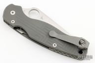 This Para 2 by Spyderco features a satin finished clip point REX45 blade with thumb hole and notched thumbrest. The handle is comprised of a milled titanium frame over nested steel liner and stand offs. The steel pocket clip is 4 way adjustable. Includes original box and paperwork. Also includes original orange/blue scales and an additional green scale. Has a couple light scuffs, otherwise excellent condition.