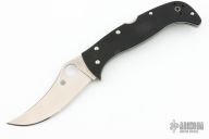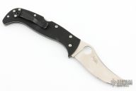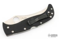 This Chinook 4 from Spyderco features a satin finish blade with thumbhole. The handle has textured black G-10 scales with stainless steel liners and backspacer, 4-way reversible black stainless steel clip. Built like a tank for EDC, survival, and martial arts use. Has some light scratches and has been resharpened, otherwise good condition.