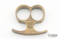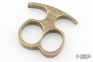 This set of hammered brass knuckles are a .442" thick. They have a little patina, but overall excellent condition.