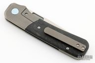 This knife features a satin finished drop point blade with a notched thumbrest.  The handle features a milled bead blasted titaiun frame, bolsters, backspacer and tip up pocket clip.  Marbled carbon fiber scales.  Includes the original box and papers.  Excellent Condition.