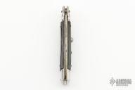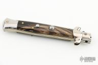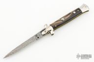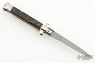 This Swivel Bolster from AB Italy features a Damascus flat ground blade. The handle is comprised of nickel silver bolsters, buffalo horn scales over brass liners and stainless steel backspacer. Excellent condition.