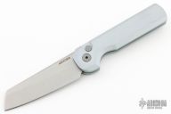 This Slimfoot Auto has a gray anodized aluminum handle and a stonewashed blade.