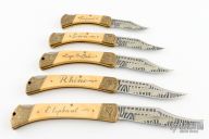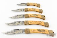 Very Fine Blade Etching on Both sides of Blade with Full Gold Fill on each knife.