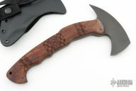 The WK RnD Axe Series is a collaborative design between Master Bladesmith Daniel Winkler and skilled Sayoc Kali martial arts trainer Rafael Kayanan. The handle design provides a standard grip position, as well as a secondary close quarter grip that was developed to emulate the feel of a handgun grip. The optional front spike (6 - 8 month delivery) is a valuable feature in combat usage.