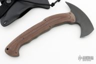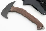 The WK RnD Axe Series is a collaborative design between Master Bladesmith Daniel Winkler and skilled Sayoc Kali martial arts trainer Rafael Kayanan. The handle design provides a standard grip position, as well as a secondary close quarter grip that was developed to emulate the feel of a handgun grip. The optional front spike (6 - 8 month delivery) is a valuable feature in combat usage.