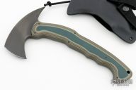 The WK RnD Axe Series is a collaborative design between Master Bladesmith Daniel Winkler and skilled Sayoc Kali martial arts trainer Rafael Kayanan. The handle design provides a standard grip position, as well as a secondary close quarter grip that was developed to emulate the feel of a handgun grip. The optional front spike (6 - 8 month delivery) is a valuable feature in combat usage.