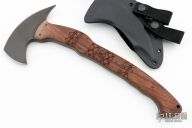 The WK RnD Axe Series is a collaborative design between Master Bladesmith Daniel Winkler and skilled Sayoc Kali martial arts trainer Rafael Kayanan. The full-size model is the most tested and highly developed axe produced by Winkler Knives, and has been proven in combat applications by a Special Operations Force Team. It is a favorite among operators and servicemen who choose their own equipment. The handle design provides a standard grip position, as well as a secondary close quarter grip that was developed to emulate the feel of a handgun grip.