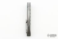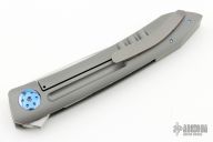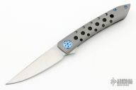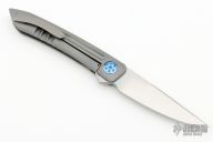 This model of the Alliance Designs Kevin Foster Anchovy features a gray blasted titanium handle with a hole pattern and blue anodized hardware. Alliance Designs has teamed up with knife maker Kevin Foster to create the Anchovy, a flipper knife that is based on his custom model of the same name. It features a satin finished blade made from RWL-34 stainless steel. This slim EDC knife sports an over-sized titanium pivot with matching body screws. The pocket clip is set for tip-up, right hand carry. Features: Hollow ground RWL-34 stainless steel blade provides excellent edge retention and slicing abilities. Smooth contoured titanium handle is comfortable in hand. Item includes a titanium pocket clip with hidden screws to keep a clean aesthetic. Comes with soft pouch. Excellent Condition.