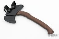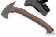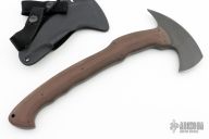 The WK RnD Axe Series is a collaborative design between Master Bladesmith Daniel Winkler and skilled Sayoc Kali martial arts trainer Rafael Kayanan. The full-size model is the most tested and highly developed axe produced by Winkler Knives, and has been proven in combat applications by a Special Operations Force Team. It is a favorite among operators and servicemen who choose their own equipment. The handle design provides a standard grip position, as well as a secondary close quarter grip that was developed to emulate the feel of a handgun grip.