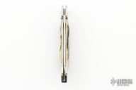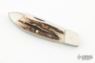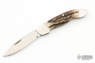 This slipjoint by Clifford Polk features a satin finished blade with nail nick. The handle has stainless steel bolsters and liners, stag covers, stainless steel spring. Has some light scratches, otherwise excellent condition.