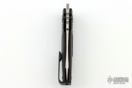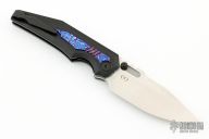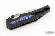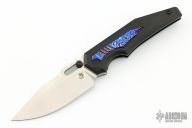 This Preytheon by Arcane Design has a satin finished blade with notched thumbrest and dual thumbstuds. The handle has a black titanium frame with mokuti inlays, tip up black titanium clip and backspacer. Comes with original zippered case and COA. Excellent condition.
