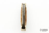 This knife has 2 mirror polished blades with nail nicks, nickel silver bolsters, jigged bone scales, brass liners and stainless steel springs. 1st Edition Knife World 1982 1 of 2000. #1683on back of blade. Has a couple light scratches, otherwise excellent condition.