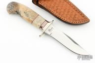 D'Alton Holder was born in Heald, Texas in 1940, was raised in Amarillo and graduated from West Texas State University with degrees in Fine Arts and English Literature. He retired early after 25 years with Diamond Shamrock Corp to become a full time knifemaker in 1988. He began making knives in 1968, joined the Knifemakers Guild in 1973 and was elected to the board in 1976, secretary/treasurer in 1978, President 1982, he served as Vice President 1984. Re-elected to board in 1988 and was elected President again in 1996. Received the Red Watson award in 1982. Named to the NSSF Hall of Fame in 1983. D'Alton is an avid horseman, hunter and fisherman. He prefers to work with natural handle materials and ATS-34. D'Alton has taught over 75 knifemakers, including people like Jim Hardenbrook and Bill Cheatham. Many of his knives are engraved by his wife, Pat Holder. Inducted into the Blade Magazine Cutlery Hall of Fame in 2003. D'Alton passed away in 2022.