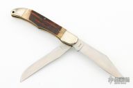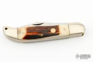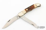 This Trapper by Puma Knives features satin finished blades with nail nicks. The handle has nickel silver bolsters, stag jigged bone covers over brass liners and steel backspring. Comes with brown leather sheath. Has a few light scratches, otherwise excellent condition.