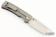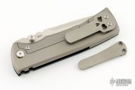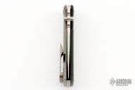 This Chaves Ultramar Redencion Drop point features a satin finished blade with the Chaves logo. The handle is made up of black G10, stonewashed titanium, skull pocket clip (positioned for tip up carry), and a matching titanium backspacer. Comes with original box and an extra regular titanium pocket clip. Excellent Condition.