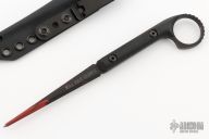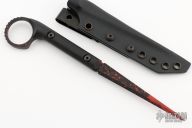 This Ringed Cardiac Spike by Half Face blades. Has a black/red cerakoted blade with black G-10 scales. Comes with kydex sheath with belt loop. Excellent Condition. "KILL BAD DUDES" is on the blade.