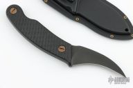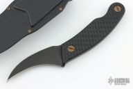 This Elvia by Turner CNC features an DLC hawkbill blade, .156" blade stock and 1.026" blade depth with full tang construction. The handle has a milled black g10 scales with bronzed hardware.  Comes with a kydex sheath and the knife will fit in either direction, original box, and COA. 60HRC with Cryo. Excellent condition.