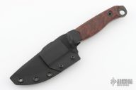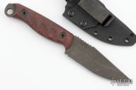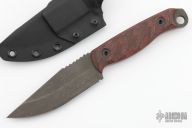 This Crow Jr by Half Face Blades features a dark stonewashed blade with a notched thumbrest, .154" blade stock, 1.335" blade depth, full tang construction.  The handle has Lava Flow Carbon Fiber scales.  Comes with a kydex sheath with clip and original box and papers. Excellent Condition.