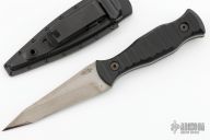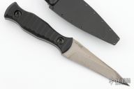 This fixed blade by Milmak Knives features a stonewash blade with a false top edge and full tang construction, .154" Blade Stock, 1.113" Blade depth. The handle is composed of sculpted black G-10 scales. Includes a kydex sheath, original box and papers. Excellent condition.