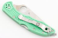 This Spyderco Delica 4 model is the first Delica ever to boast CPM M4 steel for the blade. It also has our popular mint green FRN handle.