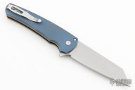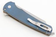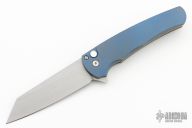 This Malibu by Pro-Tech Knives features a stonewashed reverse tanto blade.  The handle has a milled and two finished titanium frame with a pearl push button and a tip up stainless steel clip. Includes the original box and papers. New condition.