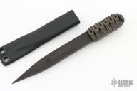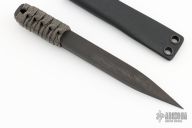 In 1988, he began making specialized knives for use by the military. This turned out to be fortunate turn of events, both for Mick and for the knife using world at large. Mick’s approach was to not get burdened by the weight of past designs. He started with a tabula rasa, a clean slate, informed only by his own experiences and knowledge of what a soldier needed in a knife. The knives he made didn’t look like the hunter-inspired knives seen in most PXs; instead they were almost brutish in their functionality: beefy, solid, and with unbreakable ¼” stock full tangs. These knives were the first indication of his innovative approach: in addition to their utilitarian design, the knives carried a subdued finish and subdued sheaths. No one carrying a Strider knife was going to be spotted because of sunlight glinting off of polished steel or a glossy leather sheath. Soldiers, policemen, and other men going into harm’s way couldn’t buy them fast enough. Mick sampled some good ideas, but made them great. For instance, he was not the first to wrap a knife handle with paracord, but he was the first to do it in a way that was tough enough for sustained infantry use. His knife line grew over the following years to include different varieties of fixed blades, all distinctive and many with specialized uses. But constant in all of them was a disregard for convention, and a desire to try new ideas. An example of this was the Ajax – it featured a very wide blade surface clearly designed to inflict damage. It drew on the weapons carried by Roman legionnaires, yet was modern and usable in the 21stCentury battlefield. Mick also worked on his technical skills, always striving to become better at the physical craft. At the 2002 Blade Show, a group of the best tactical knifemakers in the country decided to compete with each other to produce the most innovative and interesting fixed “battle blade” at the show. Mick’s entry, an incredible integral knife made out of ½” titanium stock with a zippered composite blade, gorgeous handles, and integral guard was the unanimous winner, and effectively retired the competition.