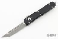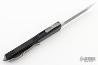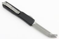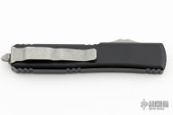 This Ultratech OTF automatic features a T/E Apocalyptic finished blade. Black aluminum handle with tip down stainless steel clip. Glass breaker. Comes with original box and papers. Serial # 269524 and dated 01/2023. Excellent condition.