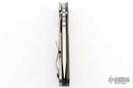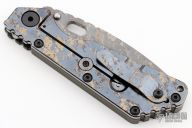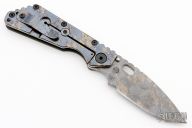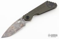 This SMF by Blackside Customs and Mick Strider. The SMF has a hand ground blade, digicam finish, thumbhole and notched thumbrest. The handle has a cerakote aluminum and digicam laser engraved titanium frame, matching tip up clip. The front of the handle has Morse Code for "Let Them Hate, so long as they fear". Has been resharpened, has a few light scuffs, otherwise good condition.