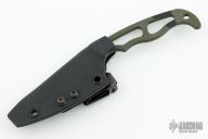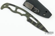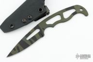 This Skeletor by Half Face Blades features a camo cerakoted blade with textured spine, .140" blade stock and 1.005" blade depth, full tang construction. Comes with a kydex sheath. Excellent condition.
