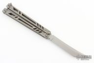 This Ti Bones Balisong from BRS features a matte finished blade. The handle is comprised of bead blasted titanium handles with satin titanium backspacers. Excellent condition.