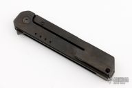 This iQ by Quiet Carry comes with a frame lock style locking mechanism and includes a stainless steel lock bar insert. The blade is a sheepsfoot style blade and you have a knife that excels with scoring and slicing tasks. Titanium scales, hardware, and stainless over travel stop. Has a couple light scuffs, excellent condition otherwise.
