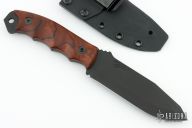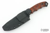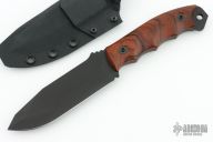 This Disaster Breacher by Half Face Blades features a black cerakote drop point blade with a full tang construction. .175" Blade Stock. 1.380" Blade Depth. The handle has ironwood scales. Comes with a kydex sheath. Excellent Condition.