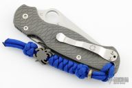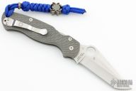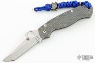 This Paramilitary 2 Linerlock Folder from Spyderco has a satin finished tanto blade with thumbhole and notched thumbrest. The handle has custom titanium scales with stainless steel liners and stainless steel 4-way reversible clip. Comes with original box, G-10 scales and papers. Has some scuffs on the titanium scales and clip, otherwise excellent condition. This knife was a BladeHQ Exclusive.