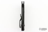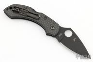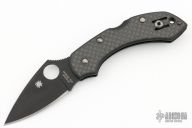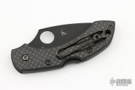 This Dragonfly lockback folder features a black coated blade with thumbhole and notched thumbramp. The handle has carbon fiber scales, stainless steel liner and back-spacer, and black stainless steel clip, tip up carry. Has a couple light scuffs, otherwise excellent condition.