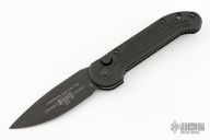 This LUDT side opening automatic by Microtech has a black blade with a standard edge and a black aluminum frame. This tactical version has black fittings. Stainless steel clip. Dated 05/2022 and serial number 26609. Comes with original box and papers. Has some minor wear on the frame, otherwise good condition.