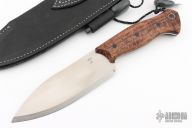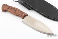 This Bushcraft XL from Tom Krein features a satin finished blade with a scandic ground blade, .133" blade stock and 1.986" blade depth, full tang construction. The handle has wood scales with a lanyard tube, black liners. Includes black sheath with belt loop. New from maker!